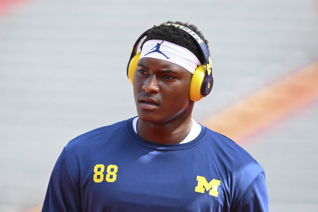 September 20, 2025: Michigan edge Lugard Edokpayi 88 before the start of the college football game between the Michigan Wolverines and the Nebraska Cornhuskers at Tom Osborne Field at Memorial Stadium in Lincoln, NE. : /Sports South Media Lincoln United States - ZUMAc04_ 20250920_zma_c04_1144 Copyright: xKevinxLangleyx