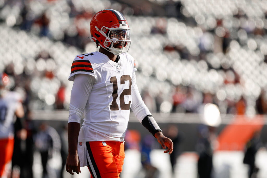 CINCINNATI, OH - JANUARY 04: Cleveland Browns quarterback Shedeur Sanders 12 before the game against the Cleveland Browns and the Cincinnati Bengals on January 4, 2026, at Paycor Stadium in Cincinnati, OH. Photo by Ian Johnson/Icon Sportswire NFL, American Football Herren, USA JAN 04 Browns at Bengals EDITORIAL USE ONLY Icon260104052